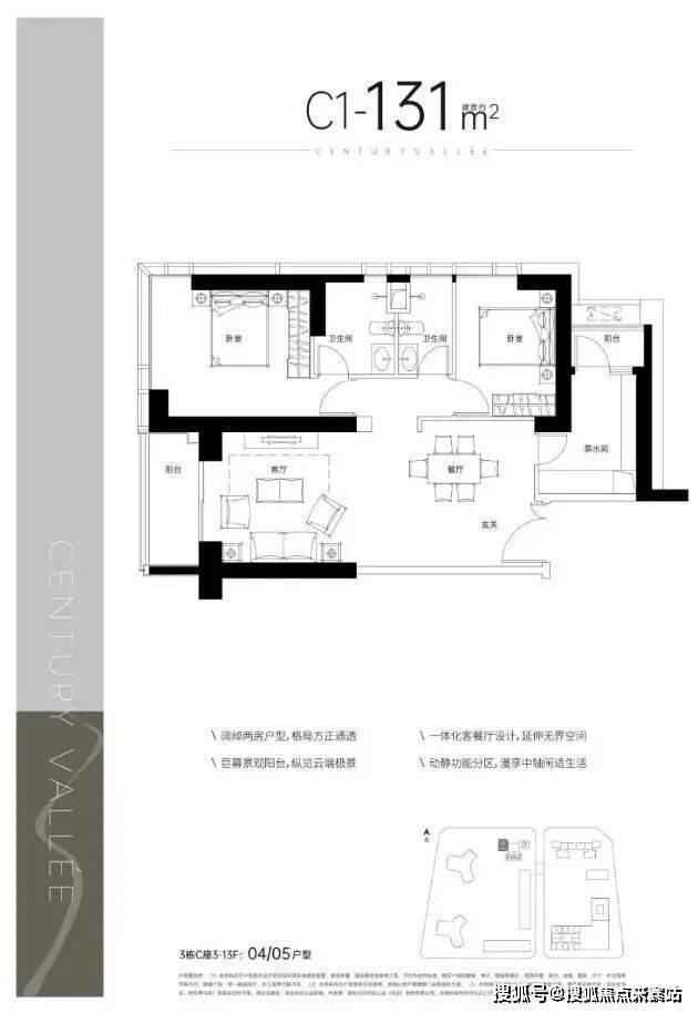约233㎡3+1房3卫 A户型,西北朝向看名商和沙河高尔夫;