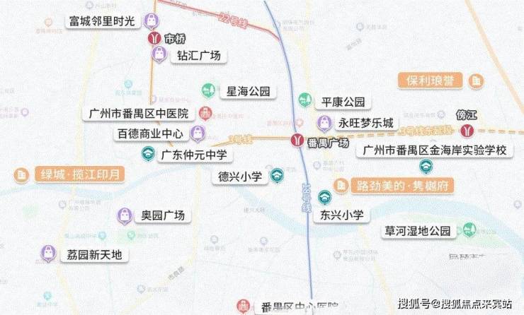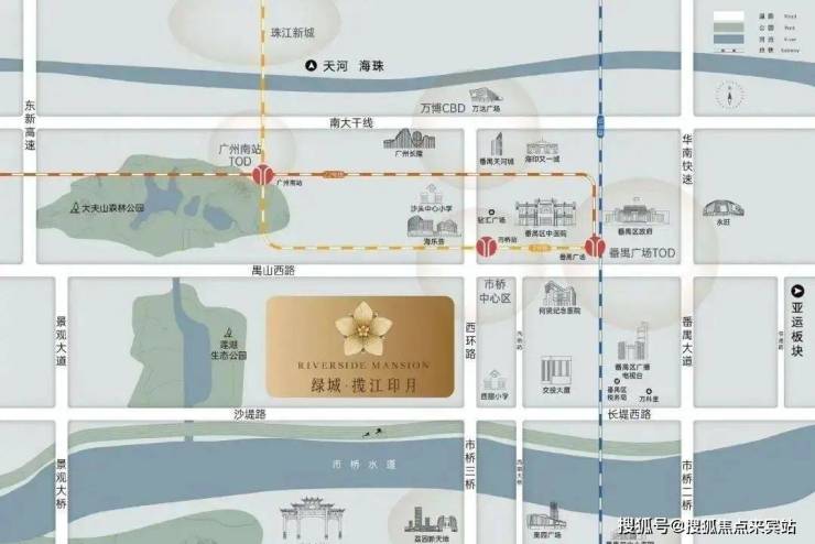 揽江印月是位于大夫山和市桥板块交界处的沙头片区,属于番禺市桥板块,临市桥水道,西面是莲湖湿地公园,所处地块是2022年由番禺交投以总价约14.3亿元,折合楼面价约1.34万元/㎡拿下的番禺区沙头街禺山大道南侧STJ15-02地块。