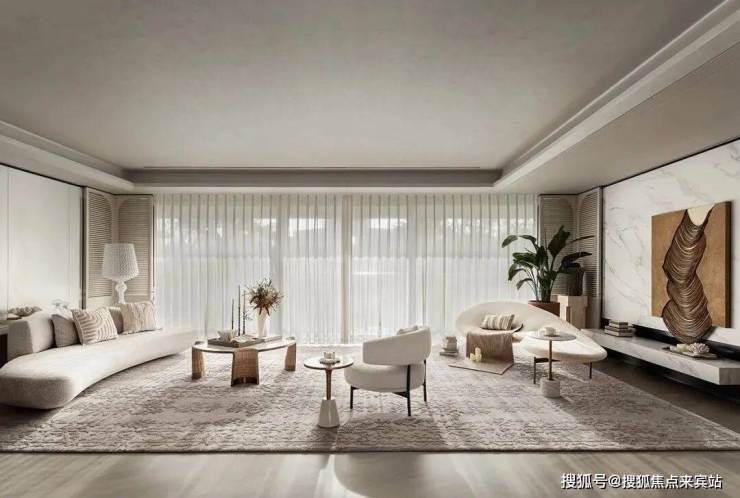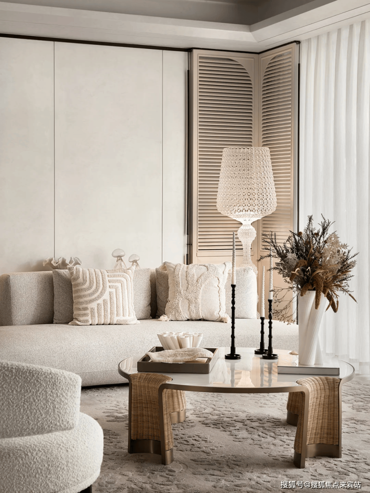 步入室内,就是约10㎡的私享电梯前厅,层高约3.5m,三面采光的公区,270°无柱环形端厅,延伸出约44米的观景面,尽显主人气场。