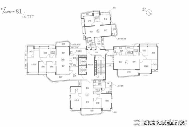 本次新加推的81栋主推4款户型,分别是01户型128m²三房两厅、02户型120m²三房两厅、03户型154m²四房两厅以及04户型83m²二房两厅。