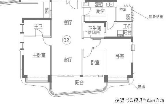 02户型,建面约120m²三房两厅