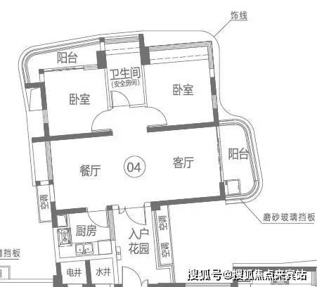 3个大阳台通风对流,形成餐客厅采光通透,4个卧室分布在另一侧,其中一个卧室还连接餐厅大阳台。