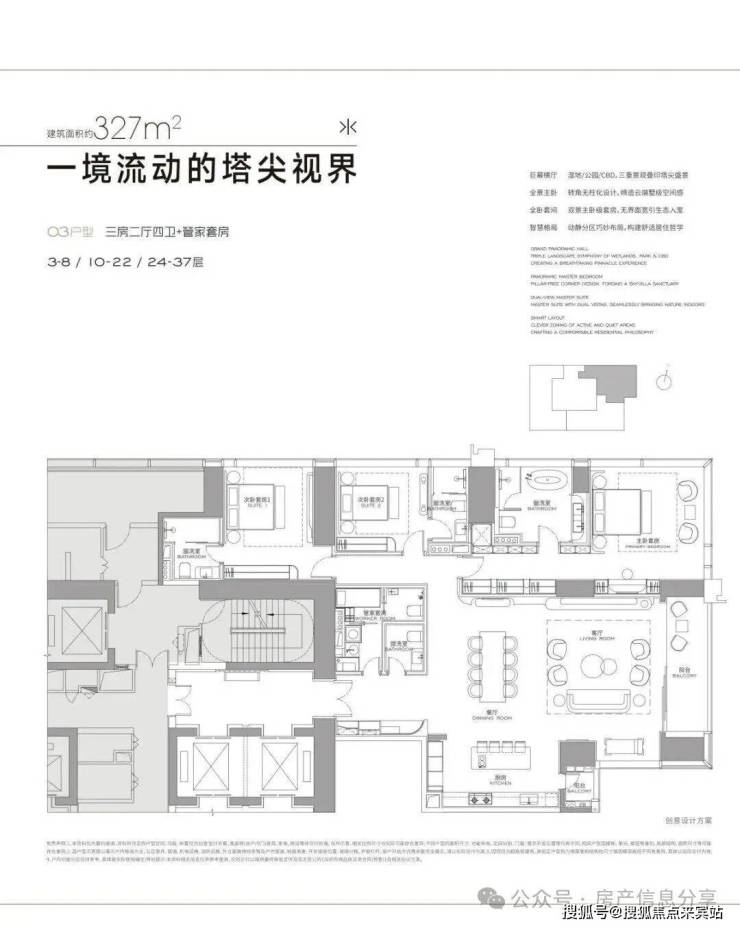 3栋低区3-37F,三面采光,客厅及主卧朝南看海,除了书房其它卧室全套房设计,该有的功能和尺度都给到了。缺点的话就是主卧整体尺度偏局促了一点。