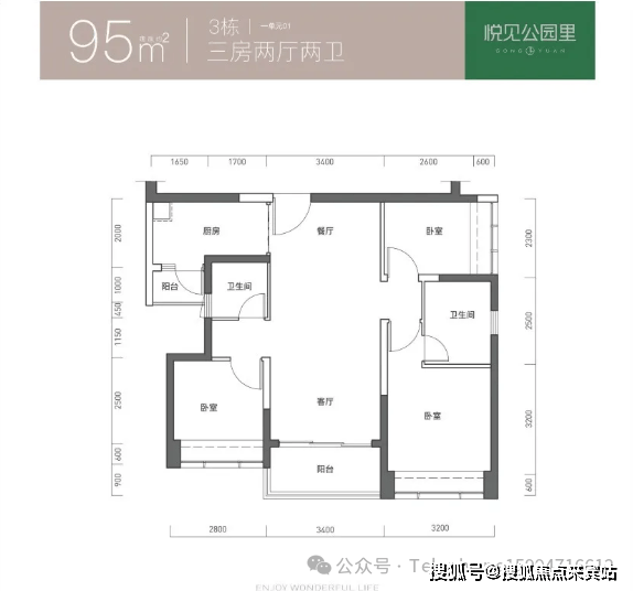 建面约95平的3房2厅,经典的“双龙抱珠”设计,双卧室+客厅采光,卧室分列两边,和父母同住,也能做到互不干扰。