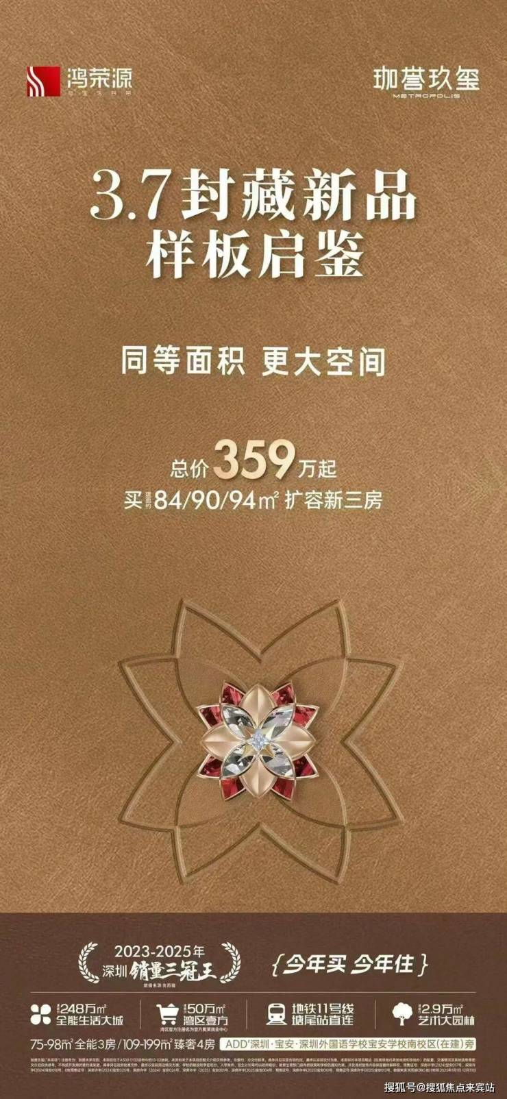 鸿荣源珈誉玖玺也是鸿荣源珈誉府3期住宅,是整个项目的收官之作,刚需3件套齐全,以后也会是整个沙井配套最成熟,人口最集中的区域,其在2023-2025年都是深圳销冠楼盘。