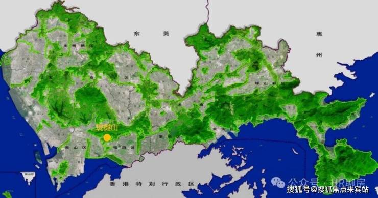 中心区域:深圳山海城中轴,左手香蜜湖、右手华侨城,六大总部基地环伺
