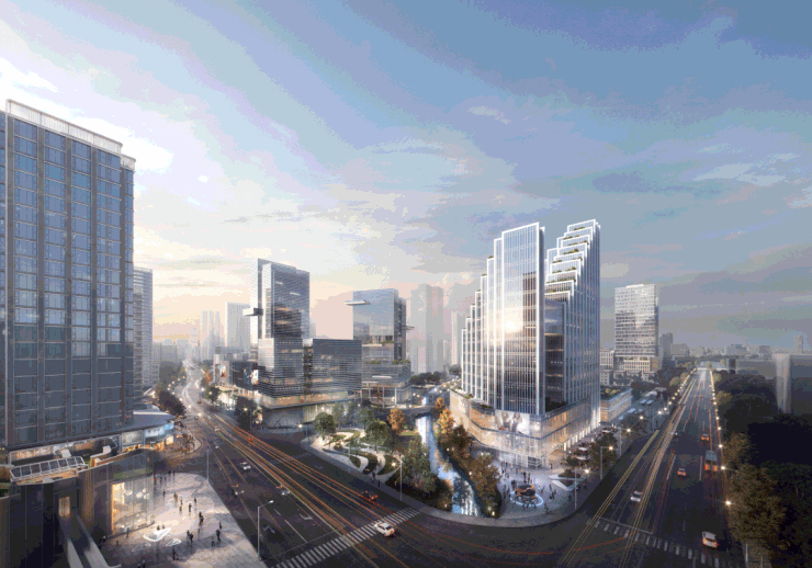 项目将为片区打造约40万方亲水滨河商业带,成为与水岸相融合的生活美学综合体。