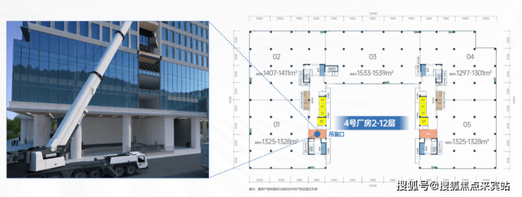 🛗每层配置2个吊装口(首层除外),并在地面预留吊装场地,1.2米卸货平台,可满足35吨吊车(车+装载货物),解决大尺寸、大重物产品电梯运输问题