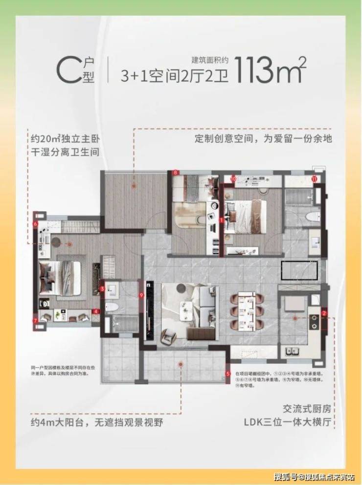 建面约113㎡户型,则是拥有大横厅的设计,整个空间拥有IMAX级采光!