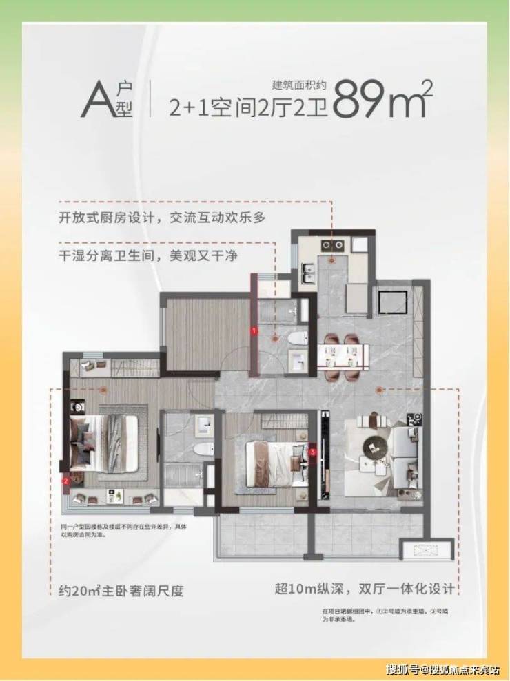 建筑面积约89㎡户型,是在80㎡户型基础上做了大升级,带来更好的空间感!