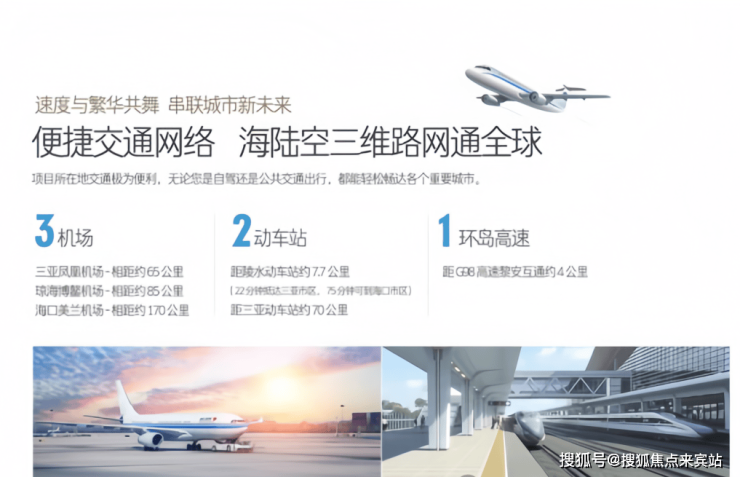 目前海南环岛动车已全线贯通,湾区内部市政公共交通、穿梭巴士等均已投入运营,多维高效交通网络,让您畅游岛内外。