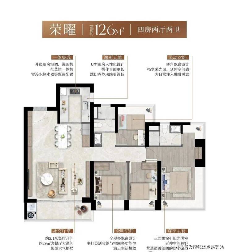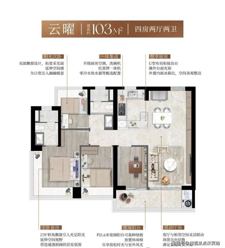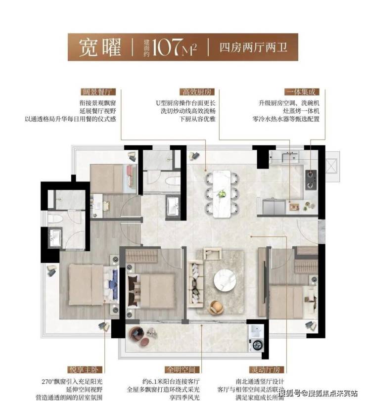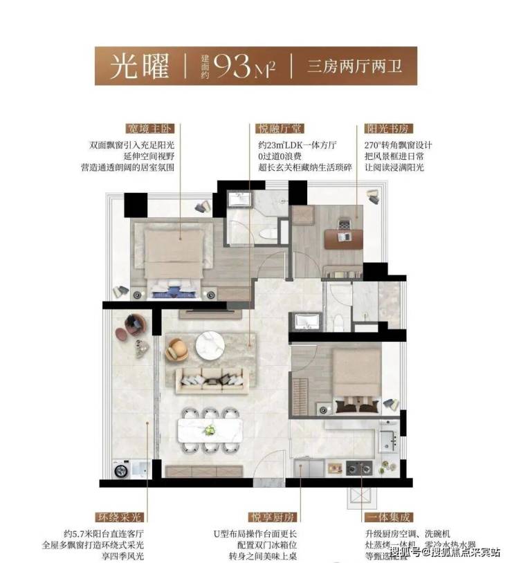 全南向户型社区,结合阔景阳台与多面飘窗,形成三面超长采光面,实现“阳光全屋覆盖”。