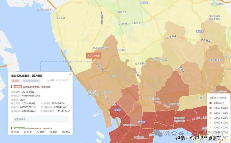 9月4日,A219-0080宗地正式上架深圳公共资源交易中心。据公告显示,该宗地位于宝安区航城街道、福永街道,土地面积181551.54㎡,建筑面积289854㎡,容积率1.6。