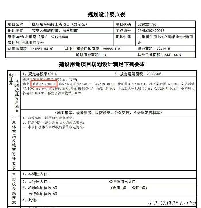 深铁机场东车辆段综合开发项目总计容面积约29万㎡(其中:二类居住用地约9.7万㎡,公园绿地约8万㎡),计划分为两期开发建设,含上盖住宅、体育公园公共绿地、幼儿园及相关配套设施;