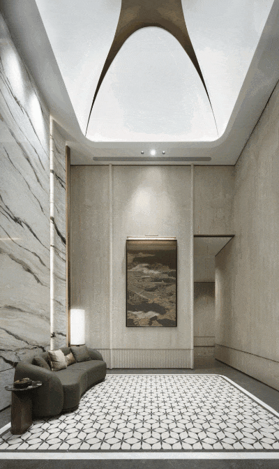 有趣的是,业主的归家动线经过一步步向上的台阶,也暗含“步步高升”的好意头,仪式感拉满了。