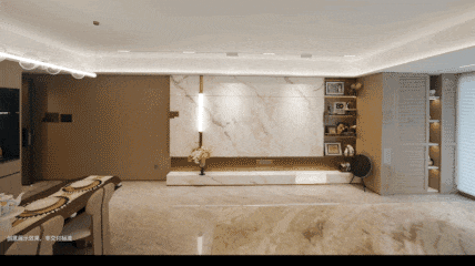 就连阳台连天花梁都覆上香槟金防霉漆,墙壁采用柔滑不划手的真石漆;还有卫浴配置酒店级女主镜柜和易清洁的大板砖。