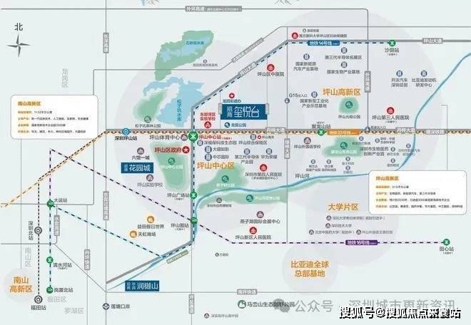 地铁:14号线坪山中心站(直达福田CBD,已通车)/16号线(连通龙岗,通车)