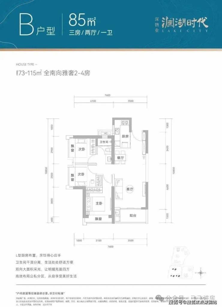 产品面积段:建面约73-115㎡全南宽奢2-4房