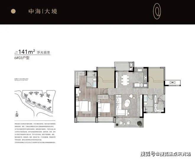 6栋03户型与首推的10栋02户型一致,南北双阳台+四开间朝南,仅有34套。