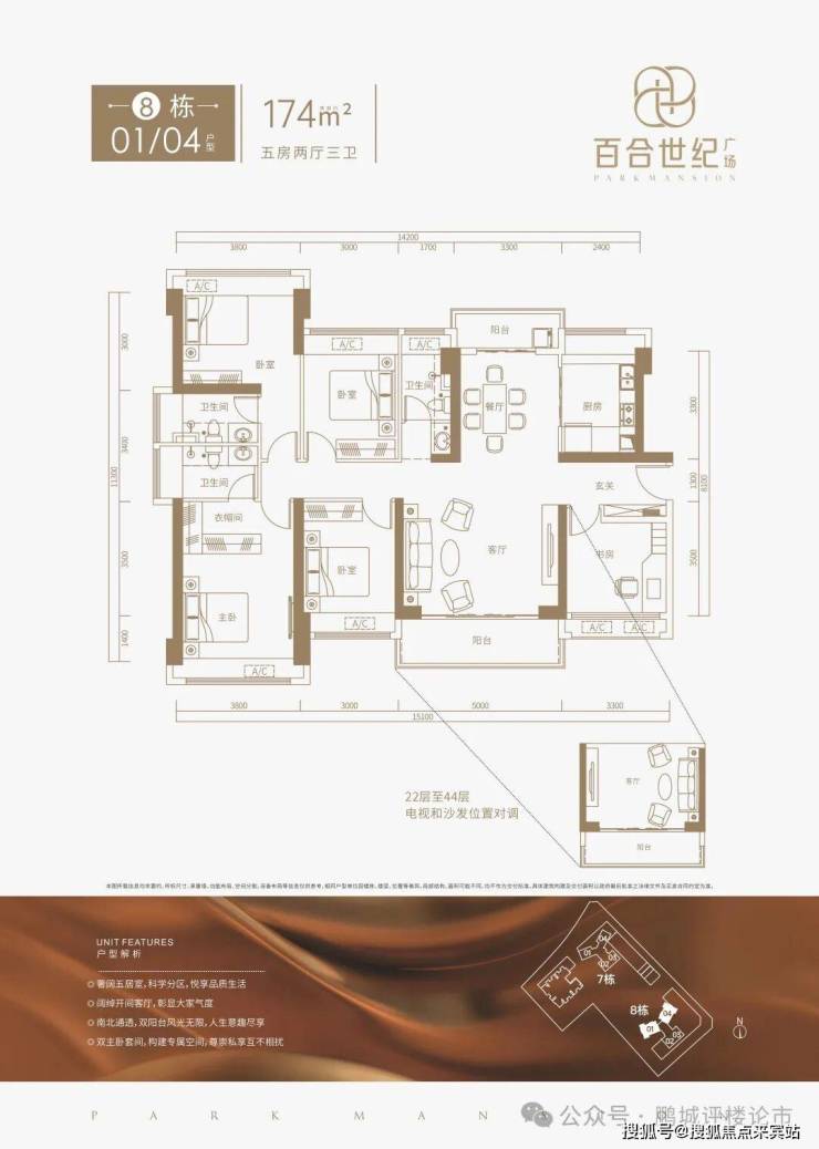 建面约101-174㎡3-5房纯居大户舒居生活就此典藏全户型朝南,采光通风俱佳奢阔尺度,给生活多一点空间
