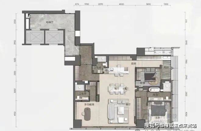 其建筑高度突破宝中天际线,采用光洁正立面与东西侧凹槽格栅设计,形成横向线条的轻盈感。三重大堂体系(地下入库大堂、首层礼宾大堂、28层空中大堂)与八梯八户的梯户比配置,将归家仪式感推向极致。