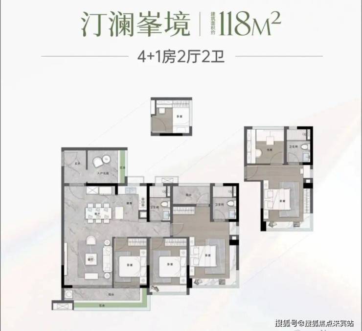 建面118平四房,采用全飘窗设计,赠送面积很多,主卧非常奢华,带有独立的衣帽间,还有270度的景观飘窗,整体空间尺度感很强,总价730-800万左右。