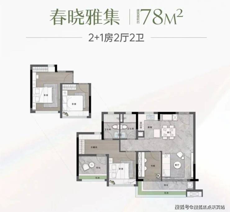 建面78平三房两卫,3房带主套,四开间采光,超长阳台贯通客厅与次卧,LDKB一体化设计,厨房采用玻璃推拉门半开放式设计,总价440-480万左右。