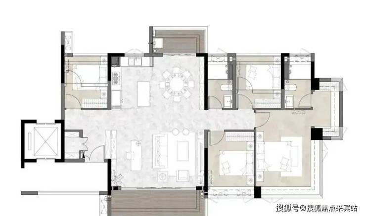 建面140平四房,全屋南北对流,双阳台设计,总共10个采光面,甚至做到了专梯专户,入户厅几乎独享,总价880-980万左右。