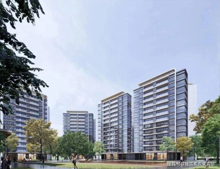 外立面会采用流行的公建式设计,大面积运用玻璃元素,玻璃和冠盖的设计,显得更端庄大气,而且,社区内部规划了园林会客区,中央水池等,楼栋的一层或用于设置架空层、会所。