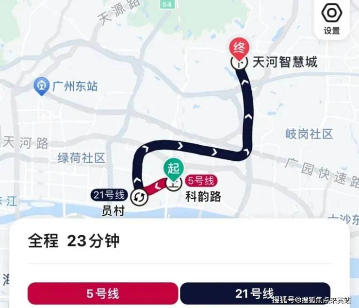 地铁去往金融城:从项目骑单车去地铁天河智慧城站,乘坐21号线到员村环城5号线,再到科韵路,全程6个站,地铁耗时23分钟,加上去地铁站的骑行时间,总耗时32分钟左右。