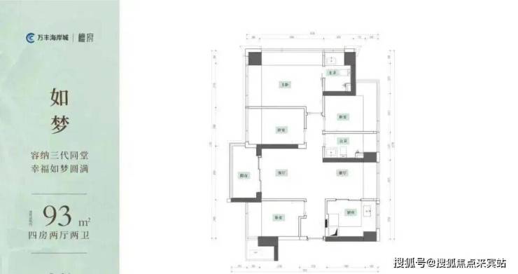 :LDKB 一体化布局,独门独户设计,南北对流,多飘窗赠送,93㎡可实现四房布局,适配多孩家庭与改善需求。
