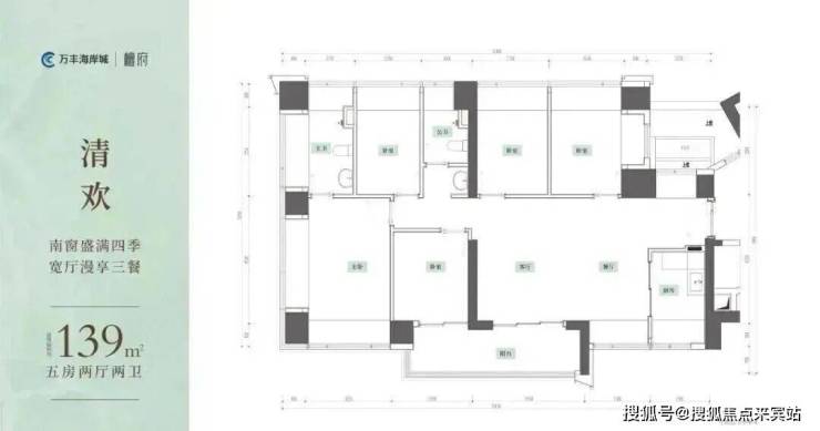 :空间阔绰,主卧套房带衣帽间与 270°L 型飘窗,满足三代同堂居住需求。