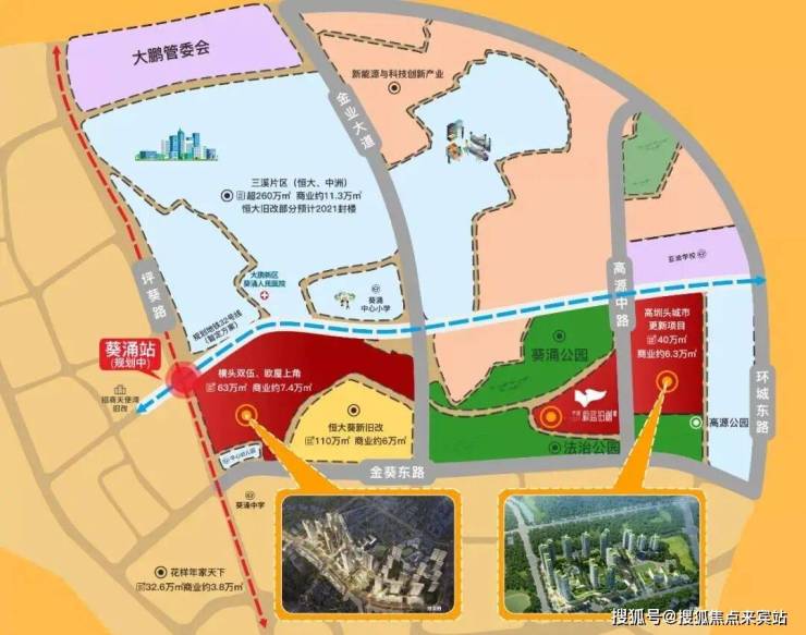 项目所在地葵涌中心区的城市更新具有开发商实力强、体量大且是连片开发的特点,能让区域带来翻天覆地的变化。卓越、恒大、保利、招商、花样年等品牌开发商争相进驻大鹏,目前已有近600万㎡陆续动工,品质大城区正由蓝图变成现实。