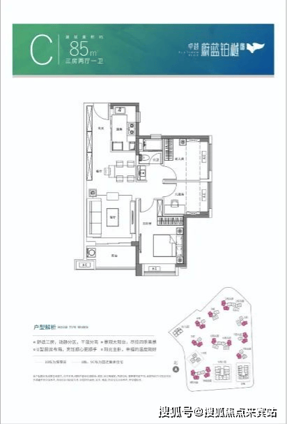 建面约85㎡ 三房两厅一卫