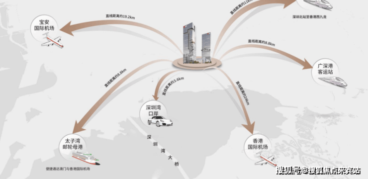 深圳一个无需换乘,即可轨道直达五大出境口岸的超级枢纽,海陆空立体通达,链接全球,地下交通层可以直接办理值机。