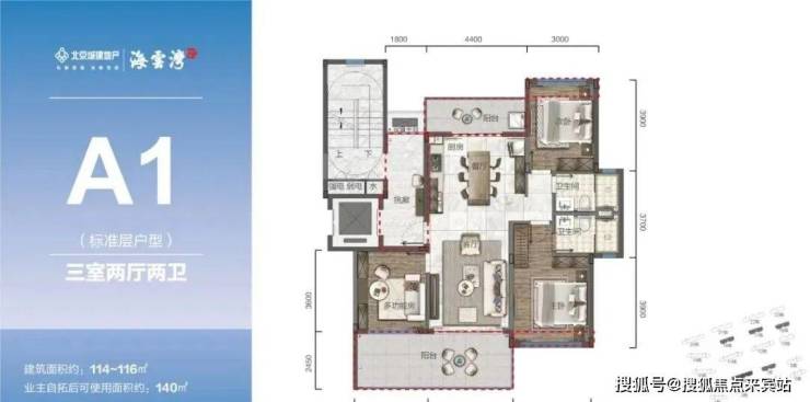 标准洋房产品(B1、C1):主力107-120㎡超大横厅宽境墅质洋房 三室两厅奢适尺度阔景阳台,纵览一线海岸