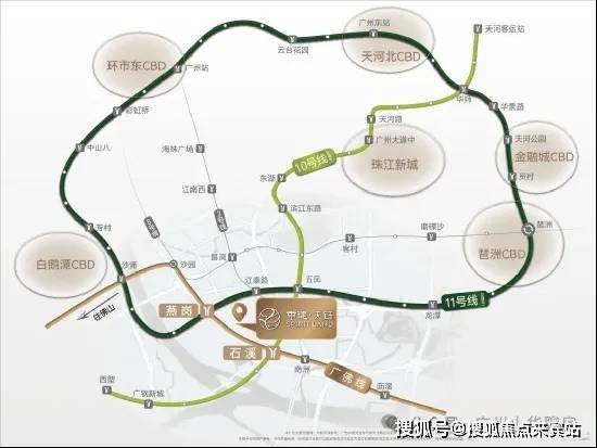 譬如地铁方面,中建天钰位于石溪站(广佛线&10号线)和燕岗站(广佛线&10号线)中间,可以说是双地铁站 x 三地铁线项目。