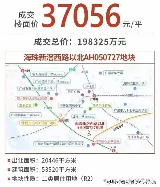 海珠新滘西路以北地块,2023年12月被中建信和(中建五局)以19.8亿总价拿下,折合楼面价约3.7万/平