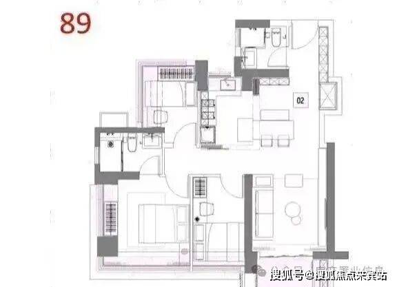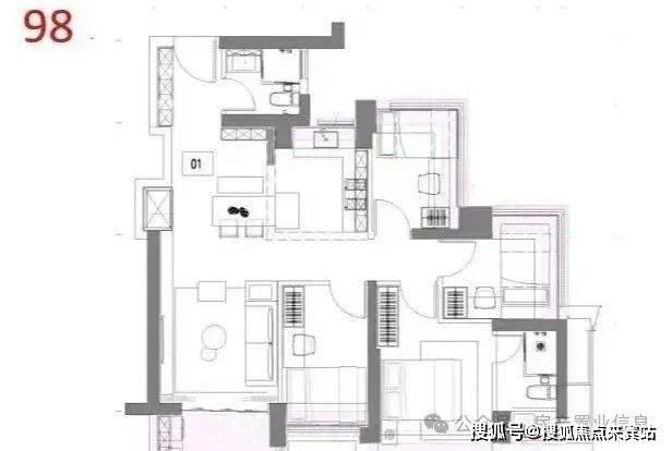 竖厅设计,92%得房率(含赠送),西北朝向阳台,预留冰箱位,主卫干湿分离。