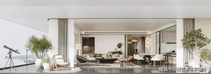 比如建面约342㎡户型,悬挑2.4米L型跑道式阳台,阔绰尺度,挑战极限。