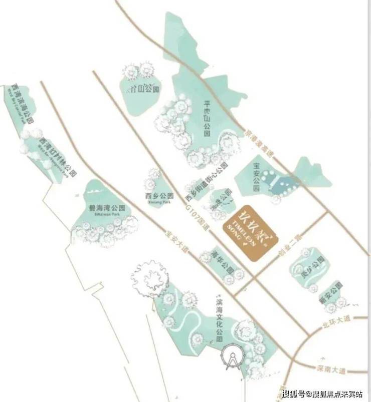 13大公园环绕,户外休闲便利,项目周边配备13大公园:流塘公园、宝安公园、碧海湾公园、西乡公园、灵芝公园、新安公园、滨海文化公园等,项目距离宝安公园直线距离仅1.5公里,距离流塘公园直线距离仅607米,出入公园环绕,宜居属性高。