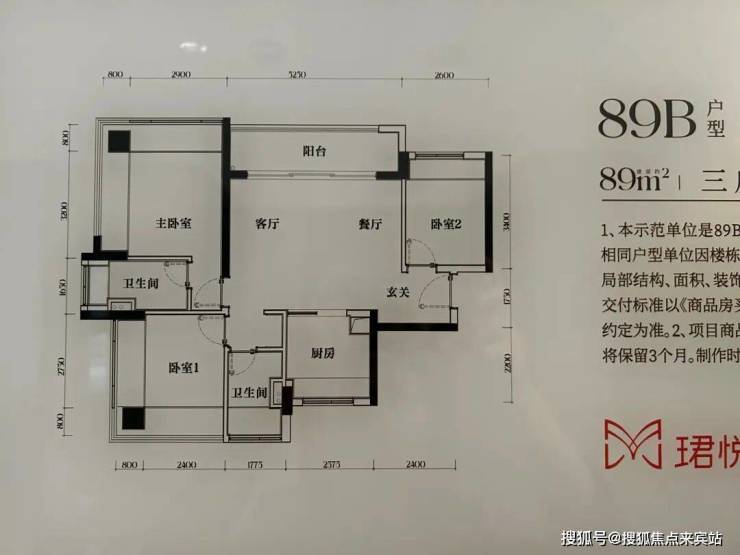 【89㎡三房2卫 A户型】1栋1单元06户(东南向),缺点是直面中粮大悦城写字楼;