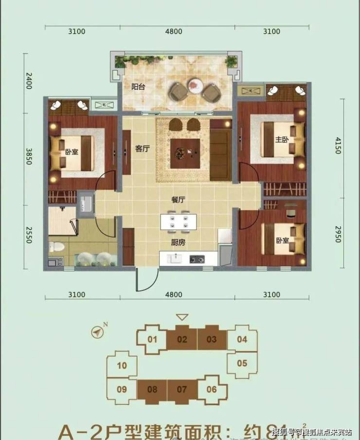 ⭐A-2户型建筑面积:约81㎡
