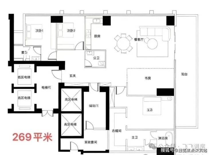 · 269-294㎡户型: 通常是四房以上大户型,注重家庭互动空间与个人私密空间的结合。