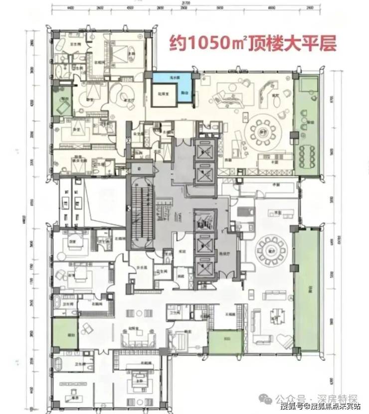 · 1050㎡顶奢大平层:位于顶楼的Penthouse,堪称深圳住宅的巅峰之作,堪比世界级豪宅。