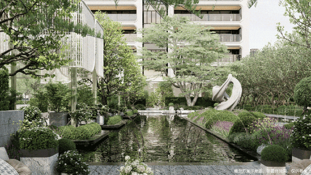 首层【静谧绿洲】:围合式庭院、阔绰车马院及落客区,以极致礼序隔绝喧嚣。
