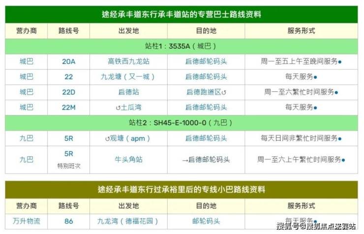 屋苑承丰道设有多条巴士路线,来往启德邮轮码头至九龙塘、九龙城、九龙湾及观塘等多地。