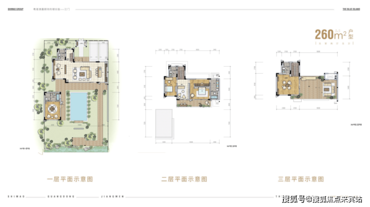 世茂碧海银湖,在这片红树林湿地里,打造了建面约105-260㎡滨海温泉合院,以高使用率、高舒适度,带来超乎寻常的居住体验。此次的合院产品主推四种户型: