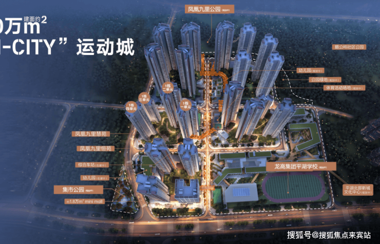 <教育>:龙城高级中学(教育集团)凤安九年一贯制学校落址项目西侧,同时项目内配建一所12班+一所9班幼儿园,目送式上学;