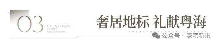奢阔空间丨中心极境 礼献粤海 翰熙典居,粤海十年之后再上新,全新奢居综合体礼献峯层。可售主力户型新规后建面约105-140㎡奢雅空间,全明方正户型将空间奢阔感与生活舒适度完美契合。明星户型超6米阳台开间,全维度巨幕景观视野,尽揽湾心万千风景。